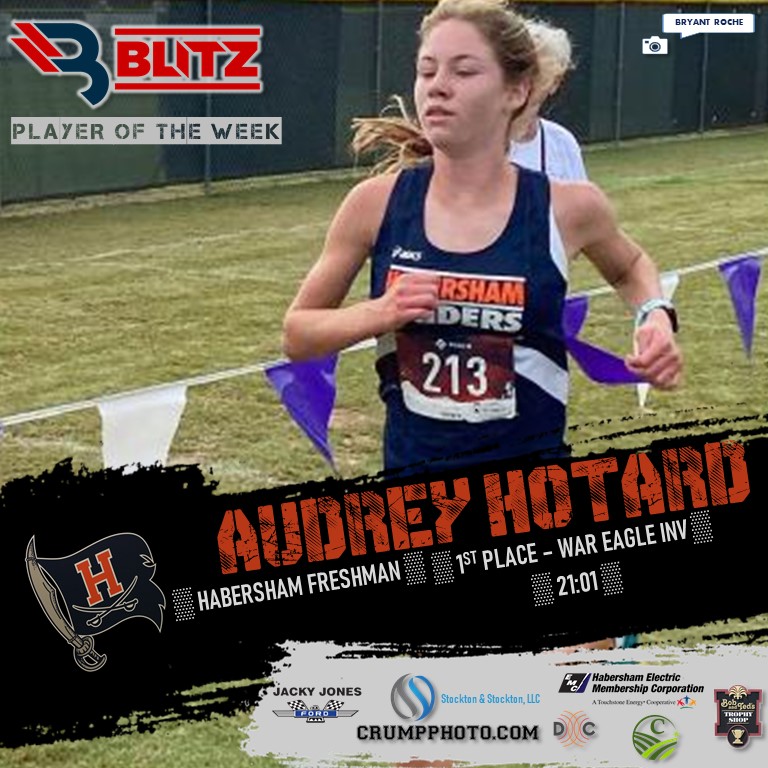 Are we all witnesses to maybe the next great local girls cross country phenom? Perhaps so…the former Middle School state champion just a year ago, Habersham’s Audrey Hotard placed first in her second varsity meet. The freshman had the top spot at 21:01 in the War Eagle Invitational. The week prior, she came in fourth at the prestigious Northeast Georgia Championships. This is Hotard’s first POW award.