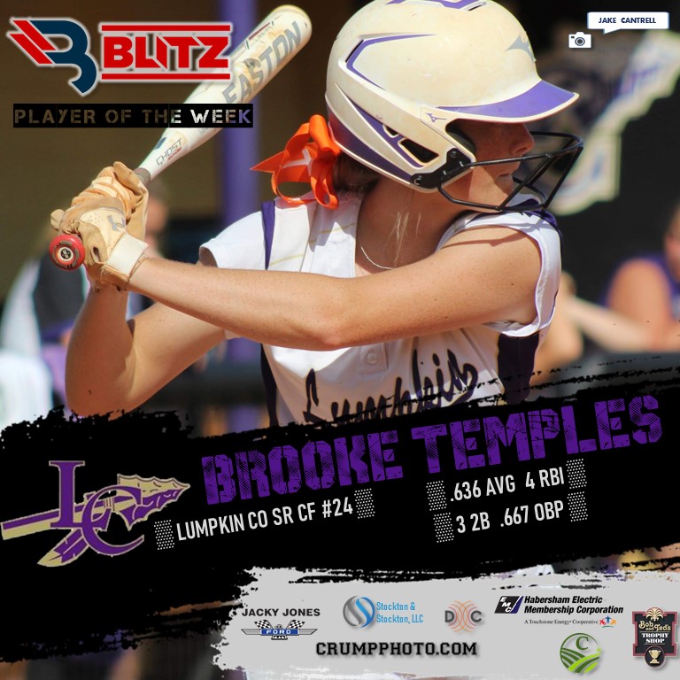 The BLITZ Softball Player of the Week Fan Vote tallied some 47,351 total votes, with Lumpkin’s Brooke Temples taking 17,367 to win the POW Fan Vote. BLITZ then named Union County’s Emma Roxbury as co-POW.