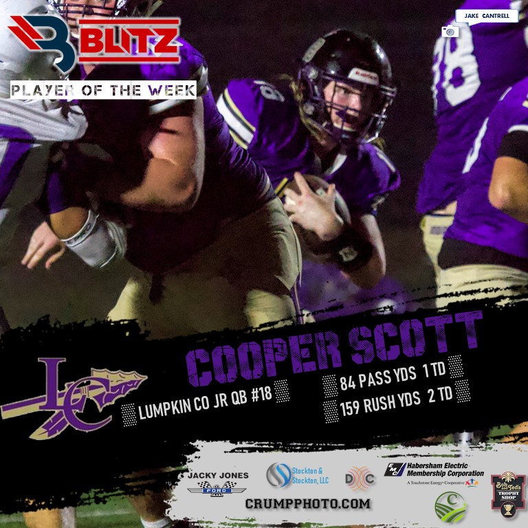 The BLITZ Football Player of the Week Fan Vote collected 35,034 total votes, with Lumpkin County’s Cooper Scott taking 18,581 to win the POW Fan Vote. BLITZ then named both Gunner Stockton (Rabun) and Logan Helcher (Union) Co-POWs.
