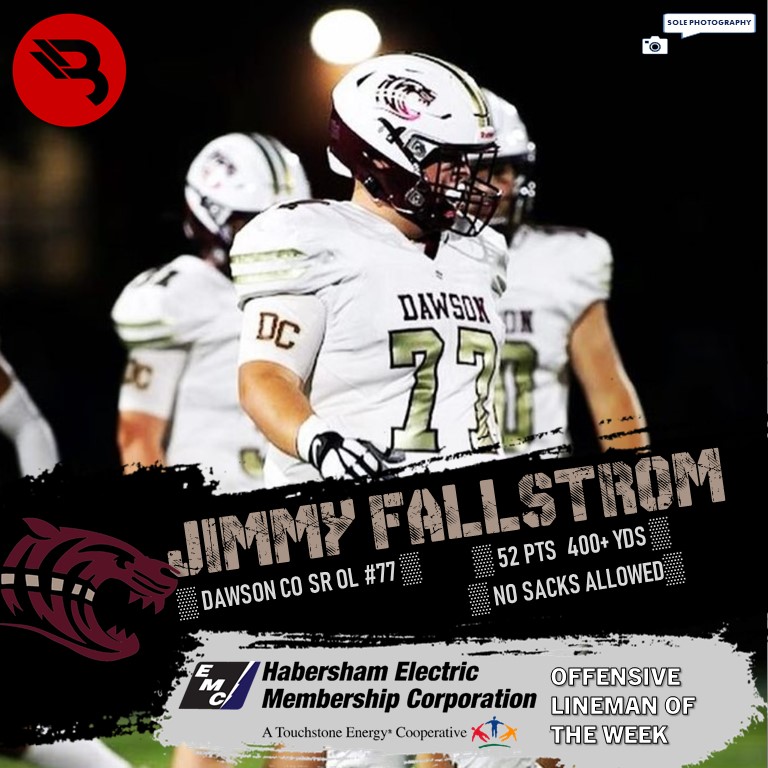Dawson County’s Jimmy Fallstrom (OL) and Rabun County’s Chris Thompson (DL) have been named the Habersham EMC Linemen of the Week by BLITZ.