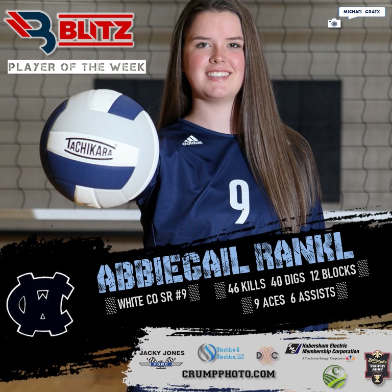 White County’s Abbiegail Rankl earns her first POW award. The senior had 46 kills, 40 digs, 12 blocks, 9 aces, and 6 assists.