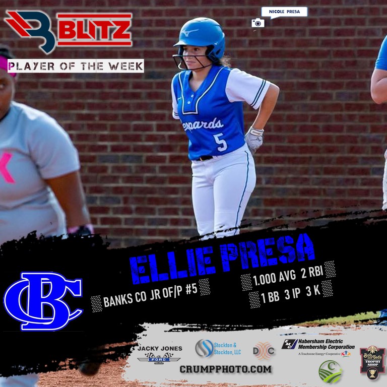 The BLITZ Softball Player of the Week Fan Vote tallied some 46,954 total votes, with Banks’ Ellie Presa taking 23,971 to win the POW Fan Vote. BLITZ then named Union County’s Kaelyn Jones as co-POW.