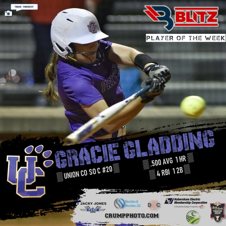 The BLITZ Softball Player of the Week award goes to both Union County’s Gracie Gladding and Dawson County’s Annslee Kirby.