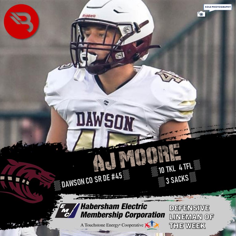 Jefferson’s Dylan Ryoul (OL) and Dawson County’s AJ Moore (DL) have been named the Habersham EMC Linemen of the Week by BLITZ.