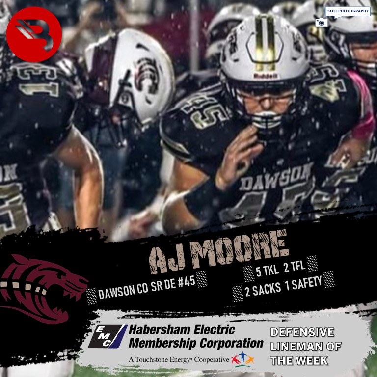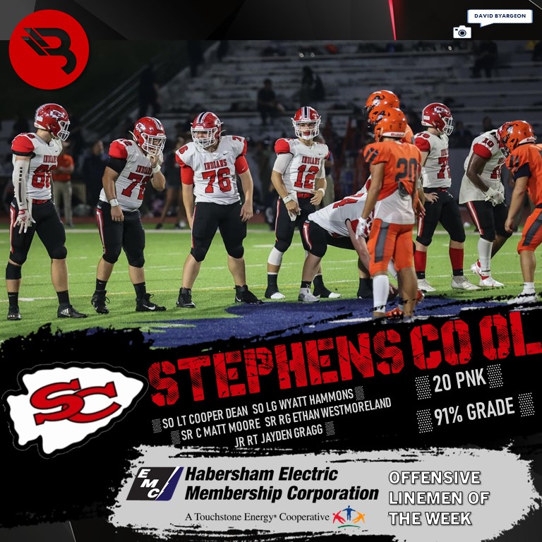 Stephens County’s entire line (OL) and Dawson County’s AJ Moore (DL) have been named the Habersham EMC Linemen of the Week by BLITZ.