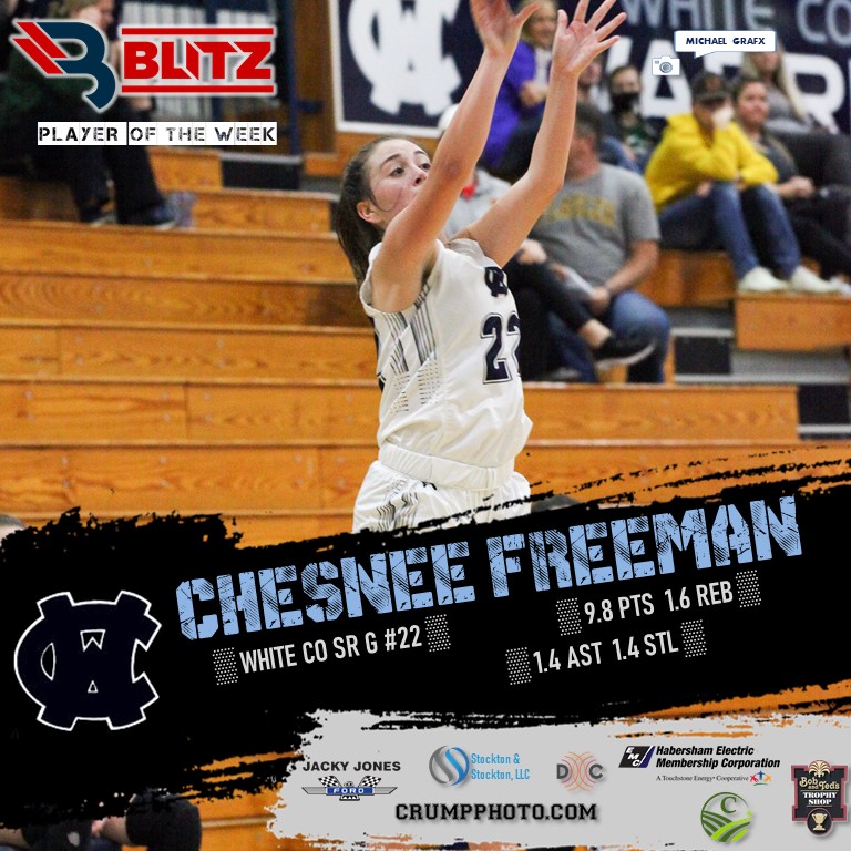 The BLITZ Girls Basketball Player of the Week Fan Vote collected 33,387 total votes, with White County’s Chesnee Freeman taking 14,533 to win the POW Fan Vote. BLITZ then named Gracie Deetz (Rabun County) Co-POW.