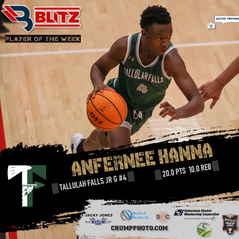 Anfernee Hanna has taken another big step toward being a Player of the Year-caliber player. The junior guard averaged 20 points and 10 rebounds in 2 games last week for the #5-ranked, 5-0 Tallulah Falls Indians, claiming his second career POW award.