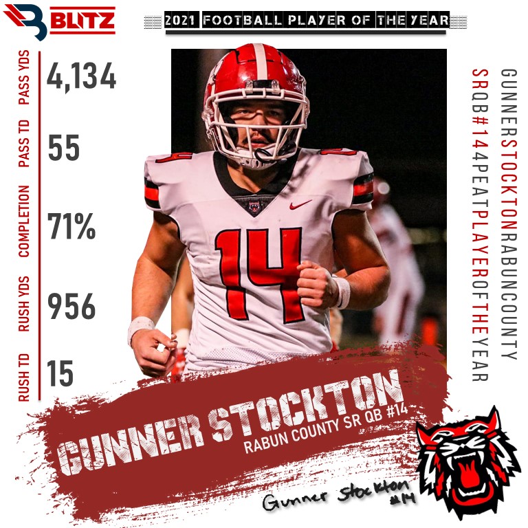Everyone knew it was coming. Barring some crazy injury, a sharp downturn in play, or someone else locally putting up better numbers, the BLITZ Football Player of the Year award was destined to go to Gunner Stockton. He becomes the first-ever BLITZ athlete to 4-peat a Player of the Year award.