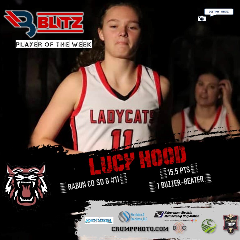 Sophomore sensation Lucy Hood had an unreal buzzer-beater last week for the powerhouse Lady Cats. The guard, who averaged 15.5 points over 2 games, and hit the buzzer-beater in a win from about halfcourt to give Rabun a victory over Cherokee Bluff, 72-71. This is Hood’s third career POW award.