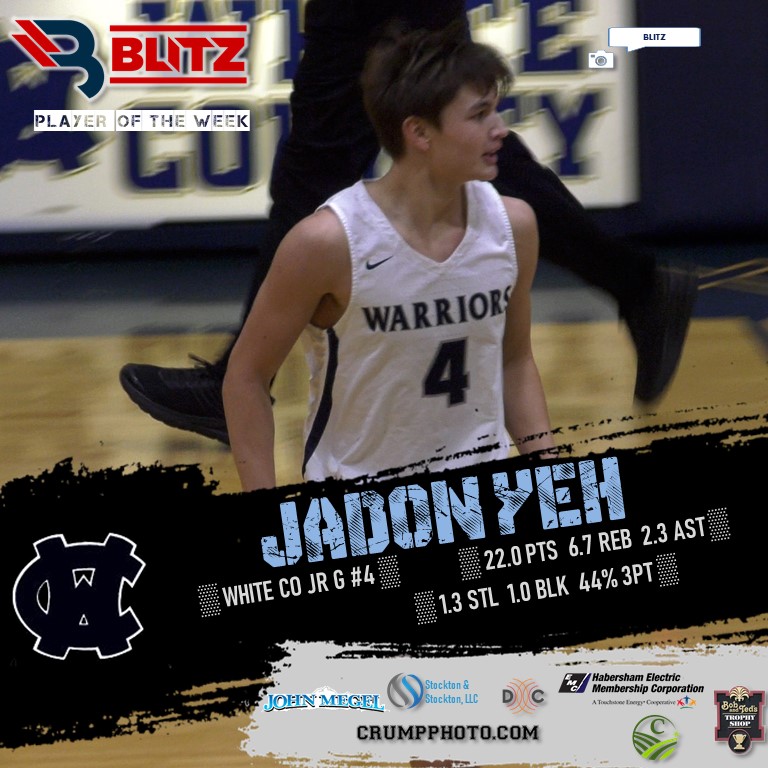 The BLITZ Boys Basketball Player of the Week Fan Vote collected 4,061 total votes, with White County’s Jadon Yeh taking 1,832 to win the POW Fan Vote. BLITZ then named Towns County’s Kyle Oakes Co-POW.