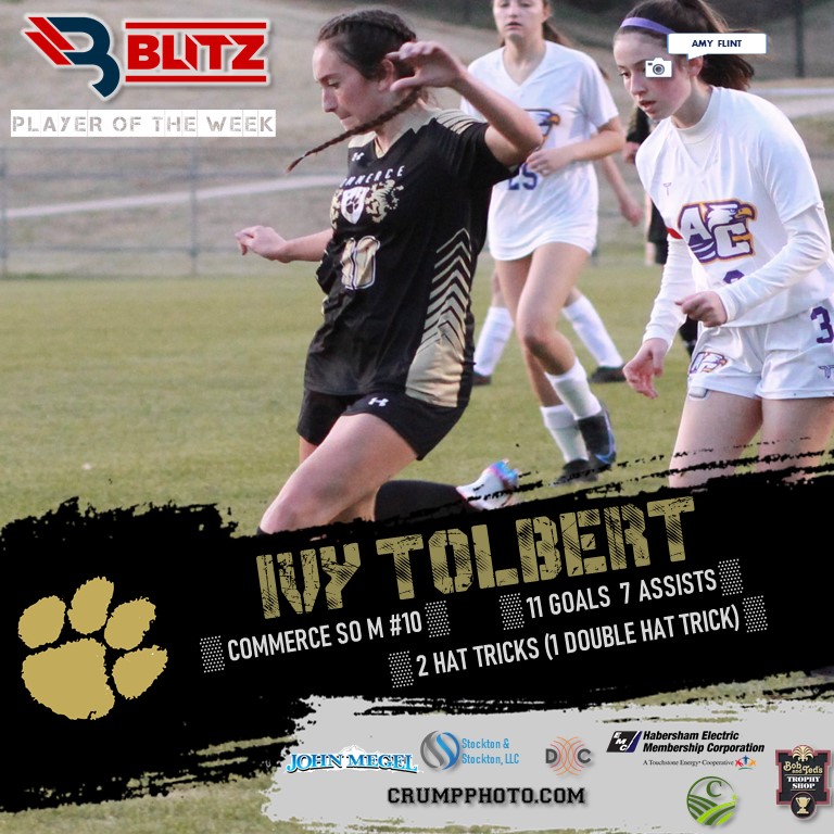 The BLITZ Girls Soccer Player of the Week Fan Vote collected 42,176 total votes, with Melodie Martin taking 19,688 to win the POW Fan Vote. She edged out Habersham’s Piper Turner (18,467 votes). BLITZ then named Commerce’s Ivy Tolbert Co-POW.