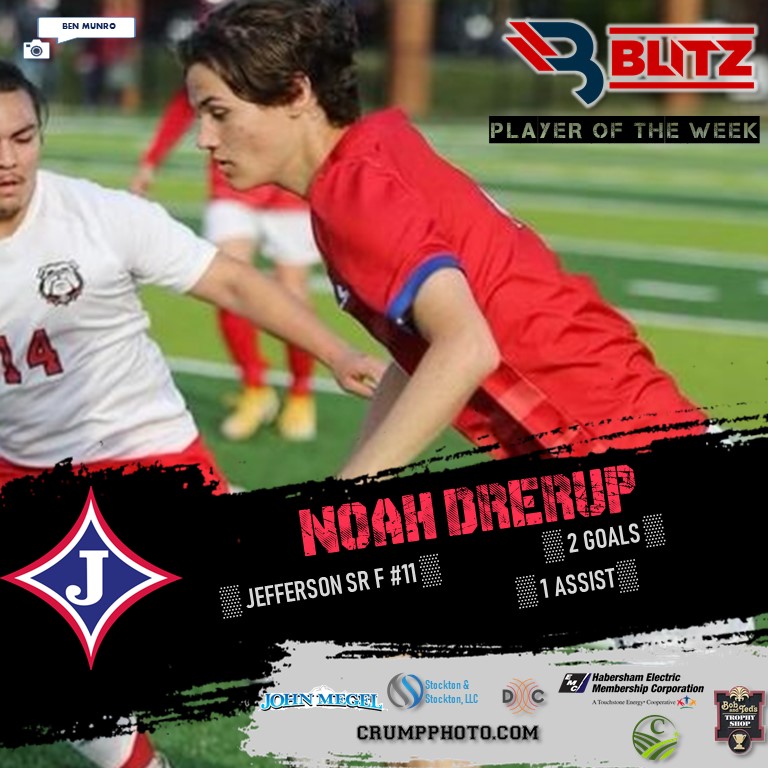 The BLITZ Boys Soccer Player of the Week Fan Vote collected 9,277 total votes, with Sean Lynes, Jr. taking 6,541 to win the POW Fan Vote. BLITZ then named Jefferson’s Noah Drerup Co-POW.