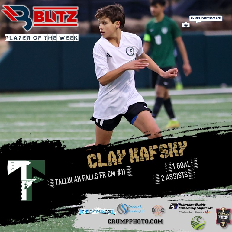 Freshman Clay Kafsky is a multi-sport standout at Tallulah Falls, and already is making a name for himself on the pitch. The center mid scored a goal and added 2 assists in a win for the Indians last week, and earns his first POW award.
