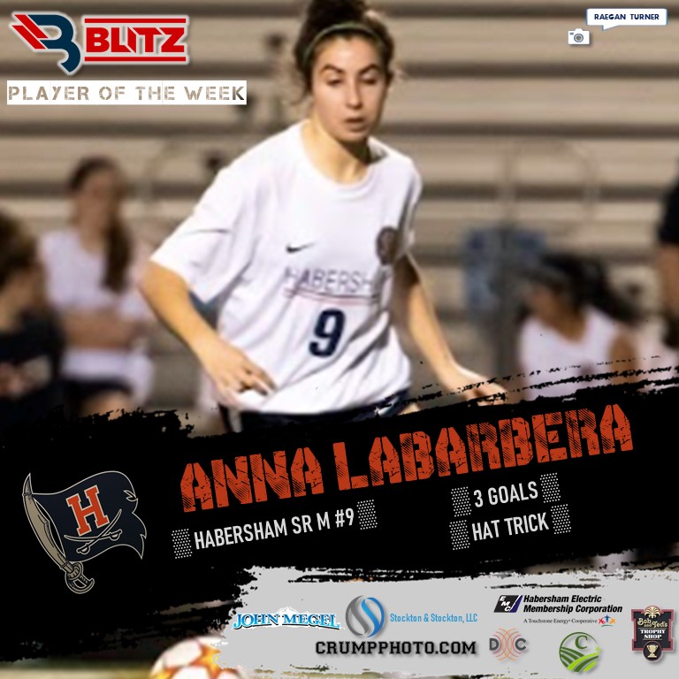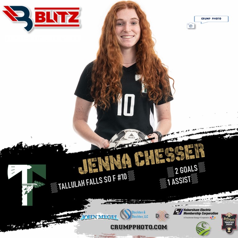 The BLITZ Girls Soccer Player of the Week Fan Vote collected 5,546 total votes, with Jenna Chesser (Tallulah Falls) taking 3,325 to win the POW Fan Vote. BLITZ then named Habersham’s Anna LaBarbera as Co-POW.