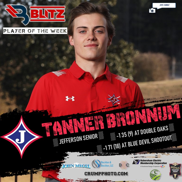The BLITZ Golfer of the Week fan vote collected 3,346 total votes. The top vote-getter was Jefferson’s Tanner Bronnum with 1,811. BLITZ then chose Rabun County’s Connor Horton as co-POW.