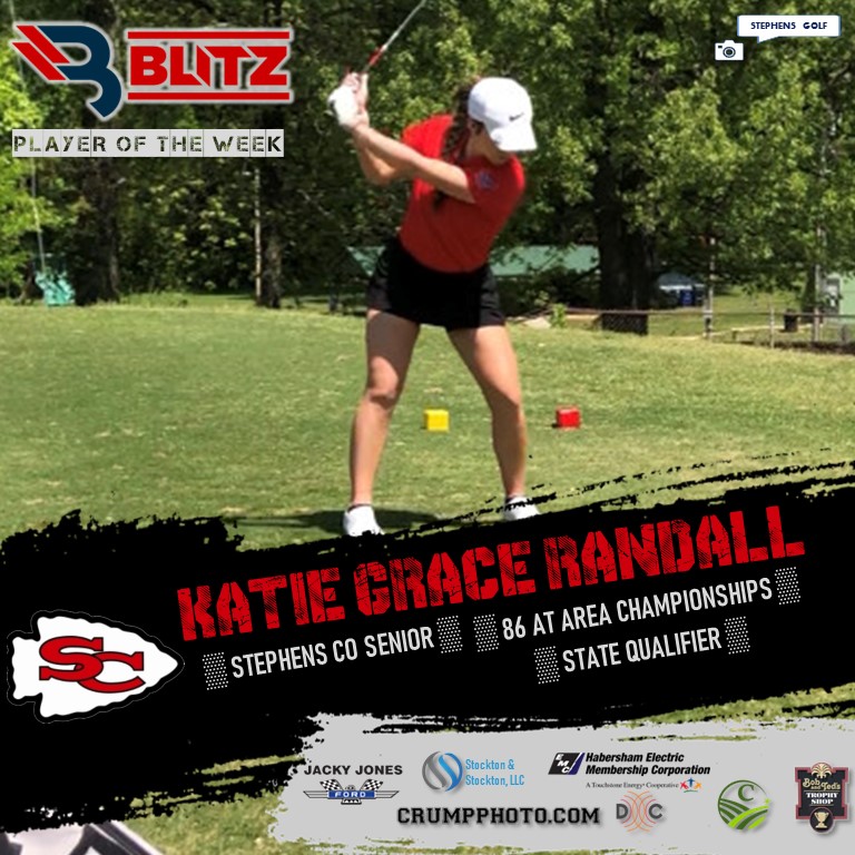 Stephens County’s Katie Grace Randall carded an 86 in the 18-hole Area Championships. The senior qualified for state, and claimed her first-ever BLITZ POW award in the process.