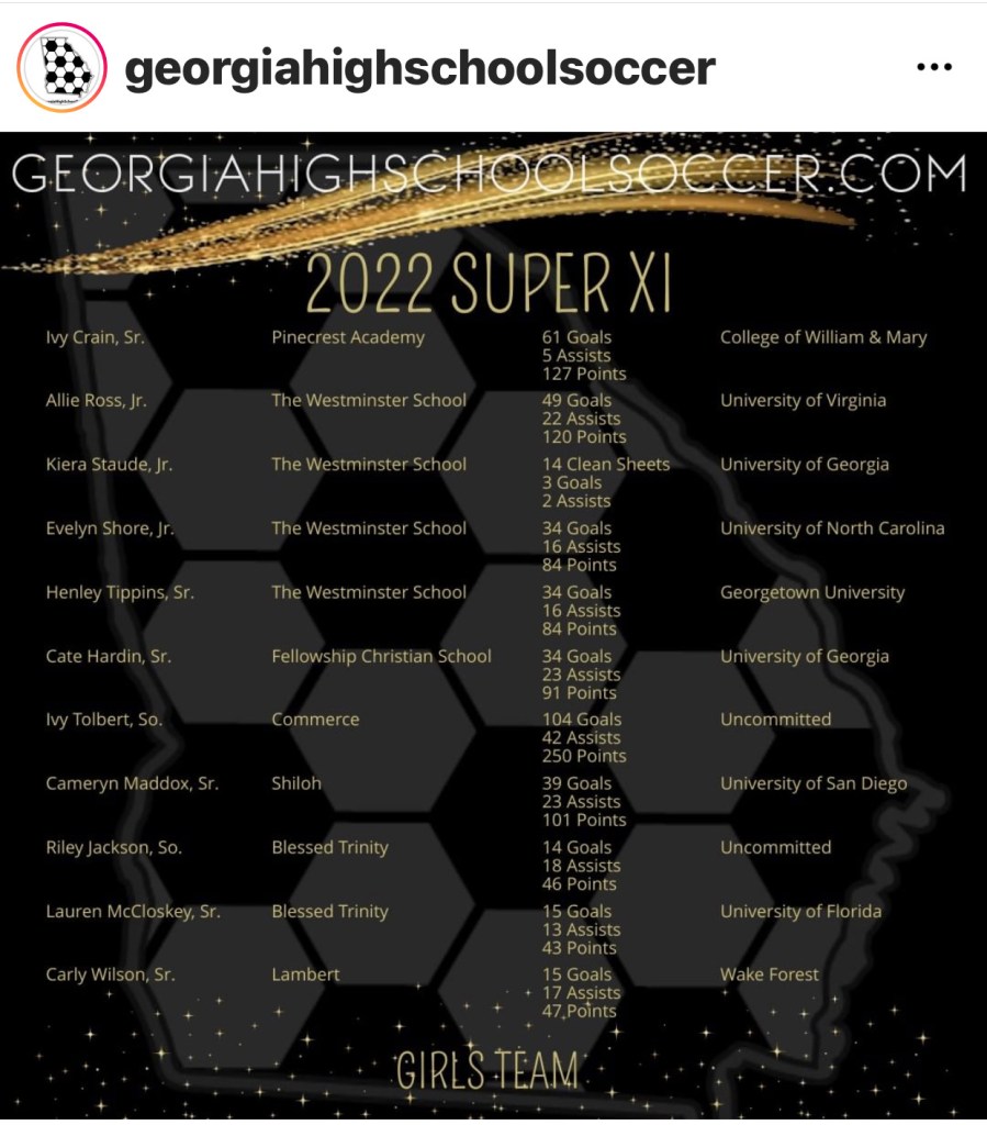 Ivy Tolbert (Commerce) was recently named to the 2022 Georgia High School Soccer Girls All-Class Super XI Team. This distinction was given only to the top 11 overall players in the state, regardless of region or classification.