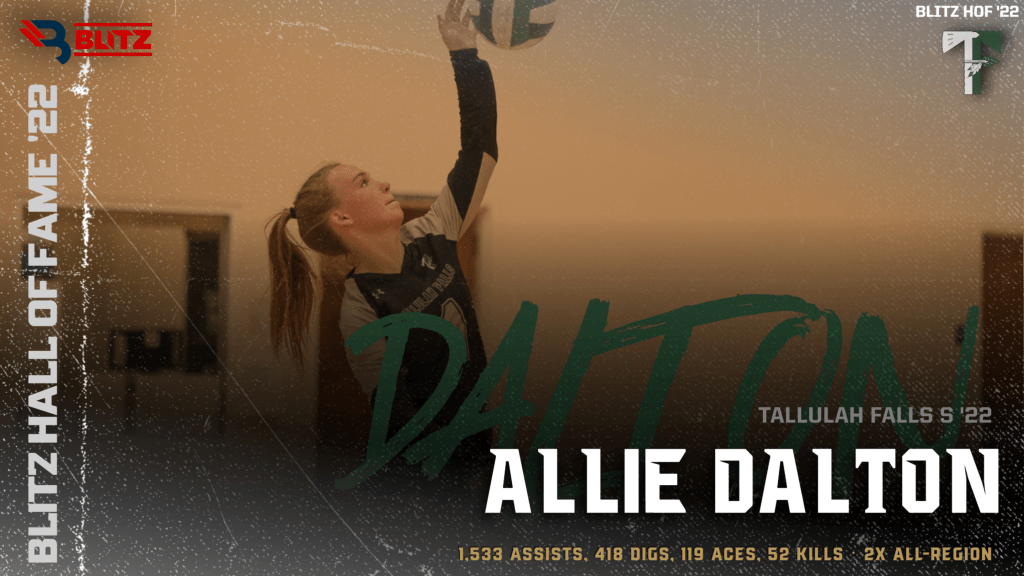 Allie Dalton, who set the single-match, single-season, and career assists record in her senior 2021 season for Tallulah Falls, finished with 1,533 assists. The setter added 418 digs, 119 aces, and 52 kills, and was a two-time All-Region selection for the Lady Indians. (800 votes)