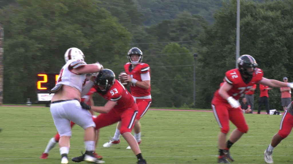 Well, that didn’t take long. It’s just a scrimmage, but Keegan Stover in just two quarters of play went up against a top-10 ranked defense (Bowdon) and passed with flying colors. He threw for 257 yards on 12-of-16 passing (75%), connecting for 3 TDs in the process. This is the senior’s first POW award, and came in a 34-21 win over Bowdon.