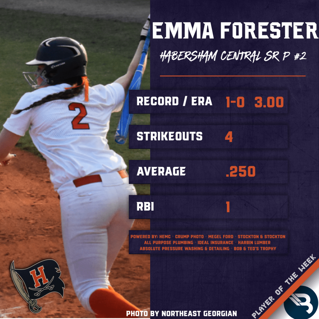 The BLITZ Softball Player of the Week Fan Vote saw 15,582 votes cast for local players. The Fan Vote winner was Habersham Central’s Emma Forester with 7,515 votes, while BLITZ then named both Natalie Shubert (Lumpkin) and Taylor Spivey (Jefferson) as co-POWs.
