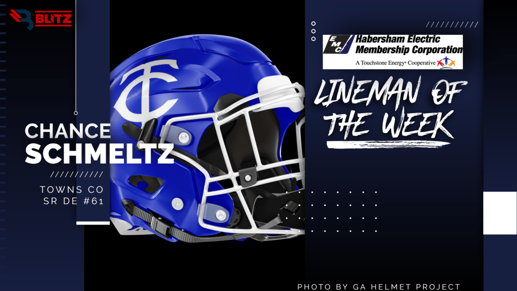 Chance Schmeltz led the attack for Towns County against Hayesville. On the road, the senior defensive end posted ridiculous numbers, gathering up 12 tackles (2 for loss), 1.5 sacks, and 5 QB pressures. This earned Schmeltz his first individual POW award, though he has earned it as part of an OL unit last season.