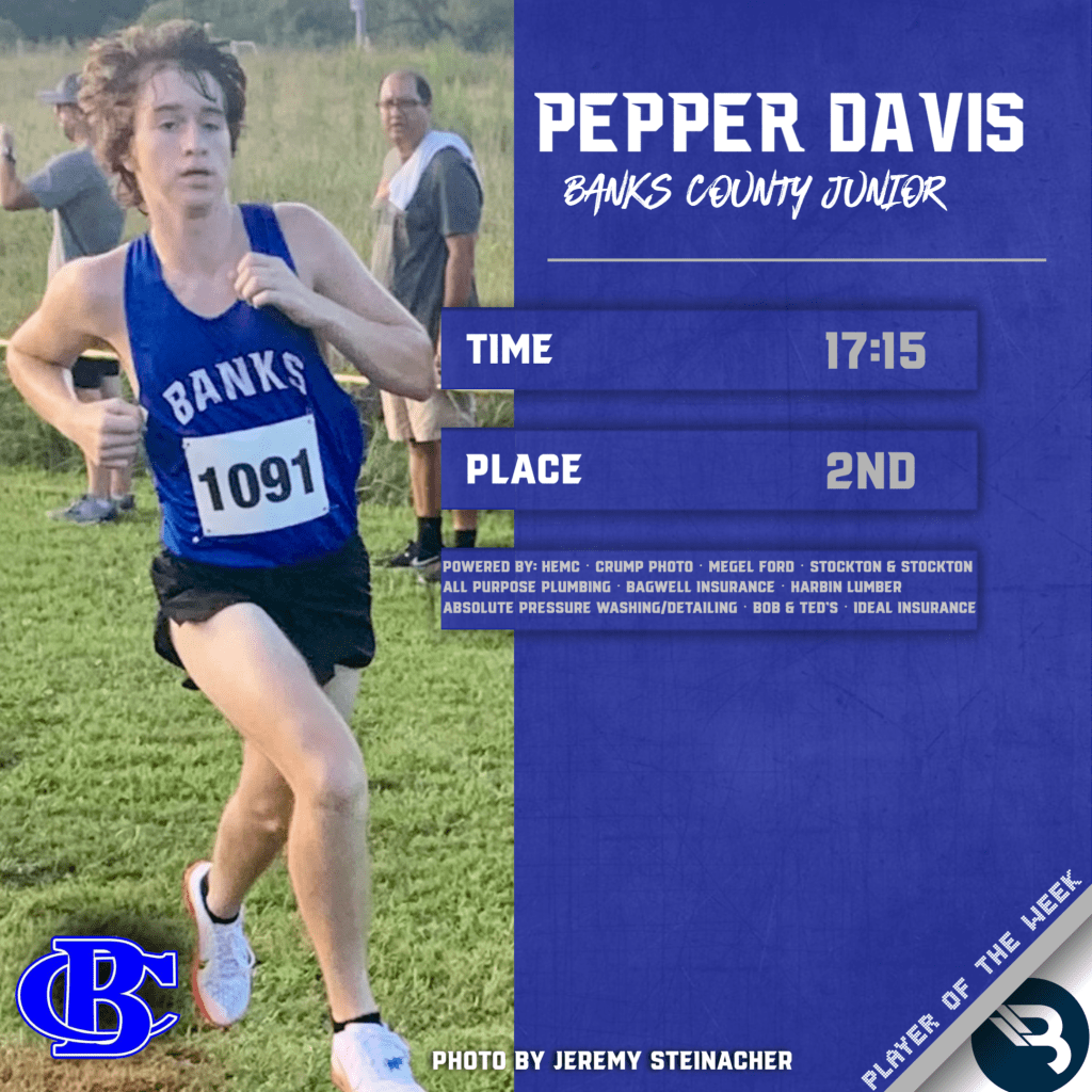 Pepper Davis has already established himself as one of the top runners in Class 2A, joining a long line of next-level runners from Banks County. The junior is off to a great start in 2022, finishing 2nd at the North Georgia Championships last week for the Leopards. His time was a blistering 17:15, which is a PR for him. This is Davis’ first ROW award.