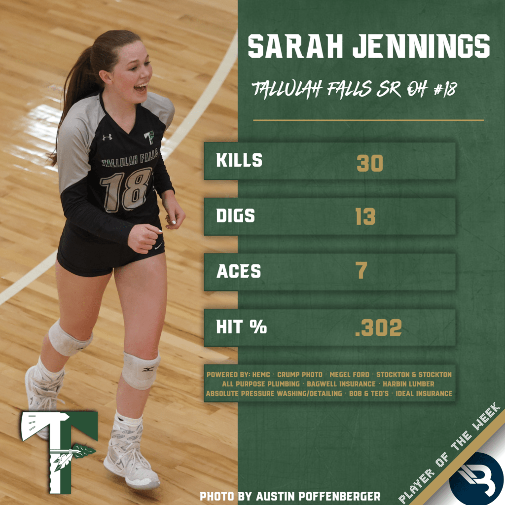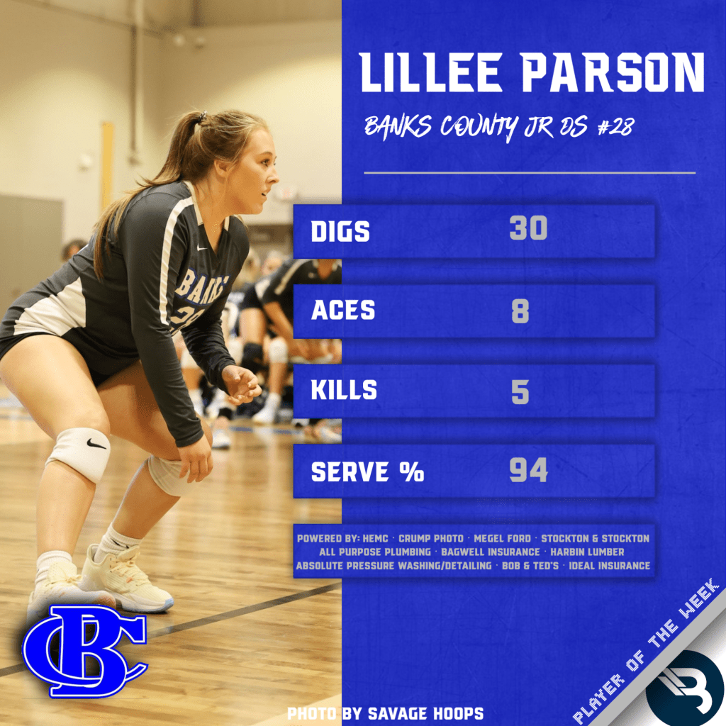 The BLITZ Fan Vote for Volleyball Player of the Week saw 10,167 votes come in, with Lillee Parson (Banks County) taking the most at 5,355. BLITZ then named Sarah Jennings (Tallulah Falls) as Co-POW.