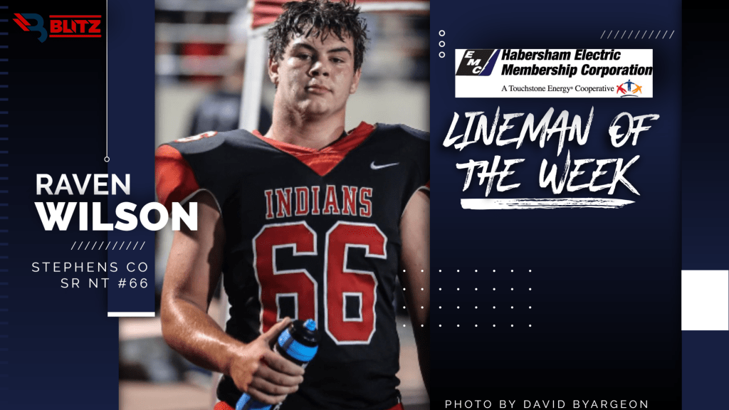 Raven Wilson was a beast in the #3-ranked Indians region title-clinching win over #6 Oconee County. The senior NT blasted his counterparts to the tune of 11 tackles, and according to coach Wesley Tankersley, his early thunderous booming tackle set the tone for the night. This is Wilson’s first BLITZ POW award.