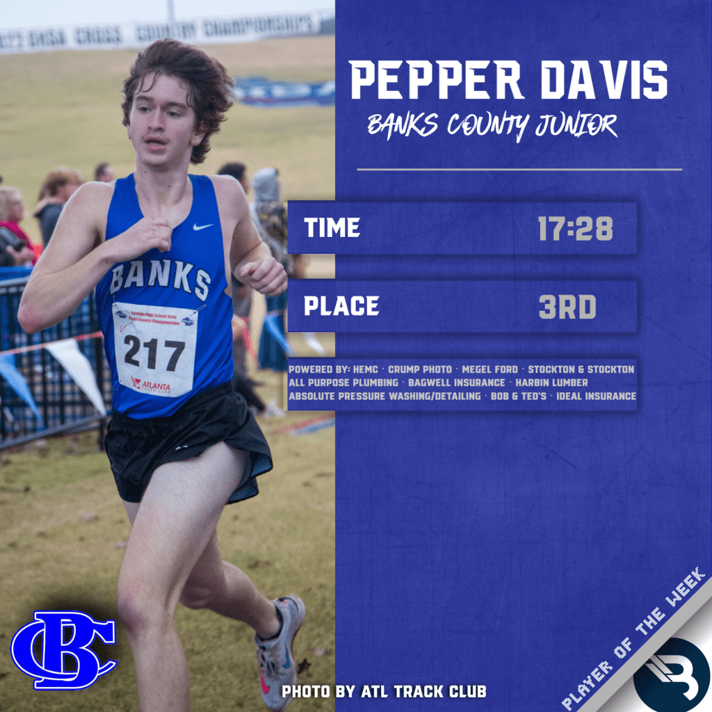 Pepper Davis finished his junior season for the Leopards with a 3rd-place finish at the state championship meet, placing in at 17:28. This is Davis’ second POW award.