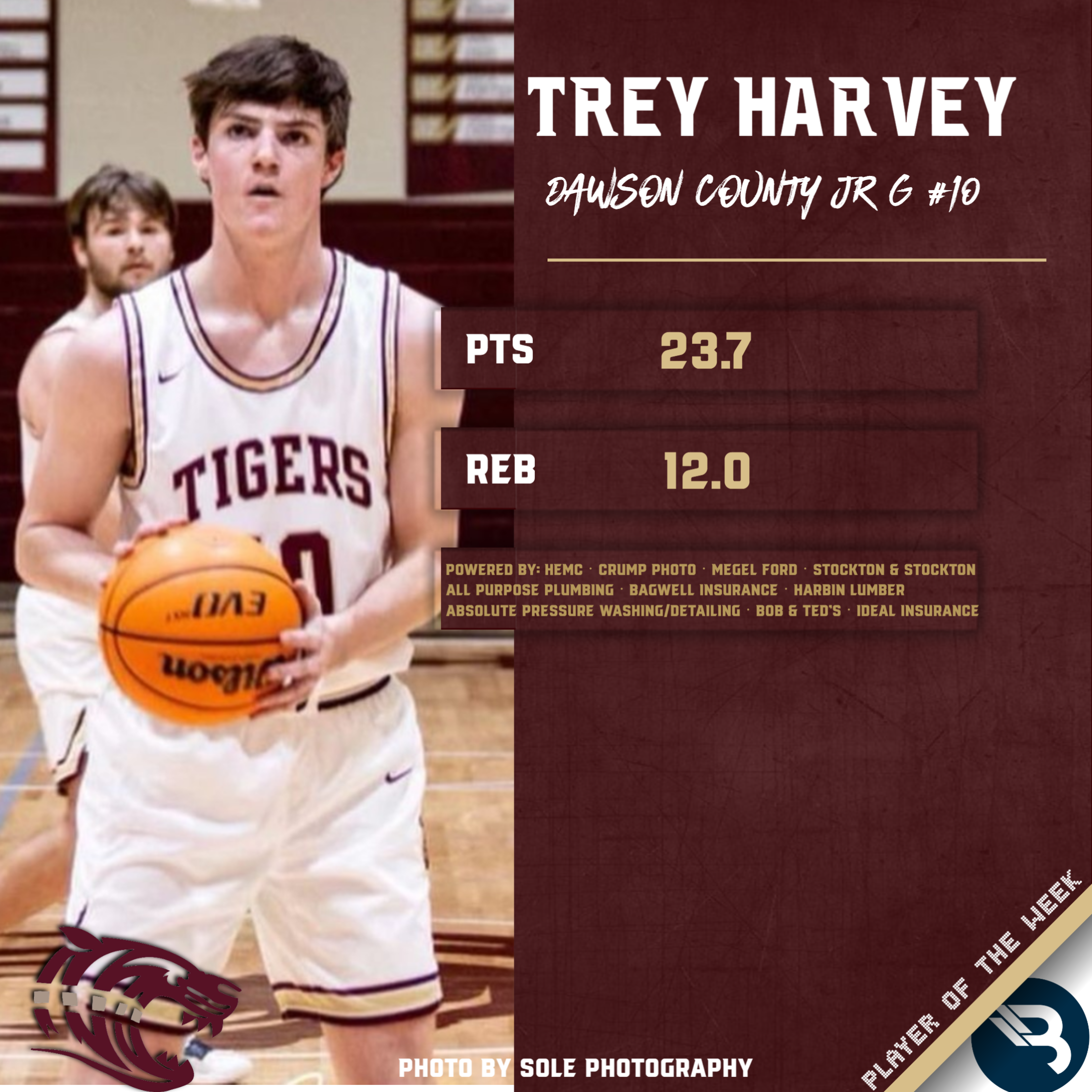 Trey Harvey earns his first-ever POW award after the Tigers’ standout junior guard put together a string of standout performances last week. Harvey went for 23 points, 9 rebounds, and 5 assists in a region win over Pickens. Then followed it up with back-to-back double-doubles against East Jackson (26 pts, 12 reb), and Camp Jewell Academy (22 pts, 15 reb). For the week, the guard averaged 23.7 points and 12.0 rebounds per game.