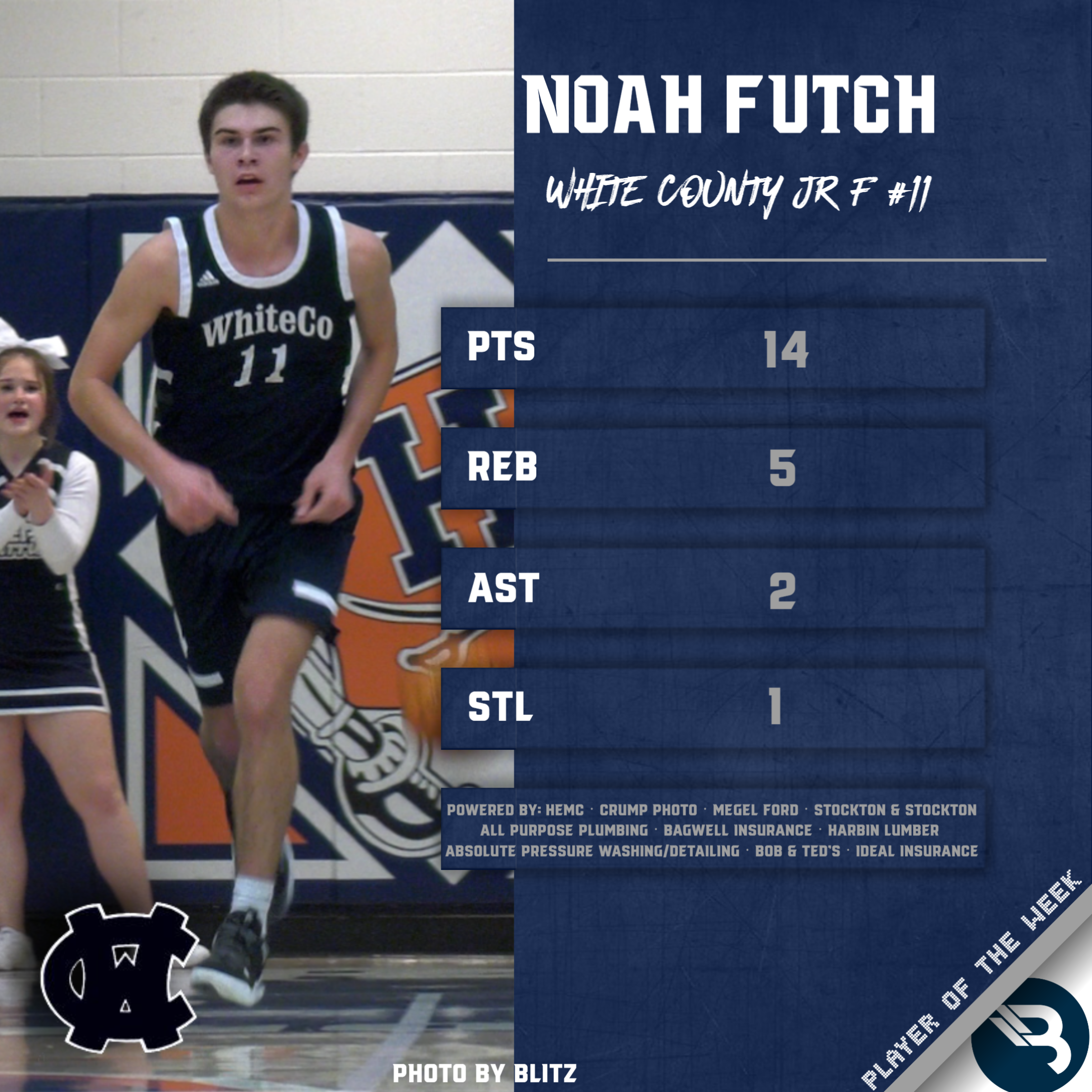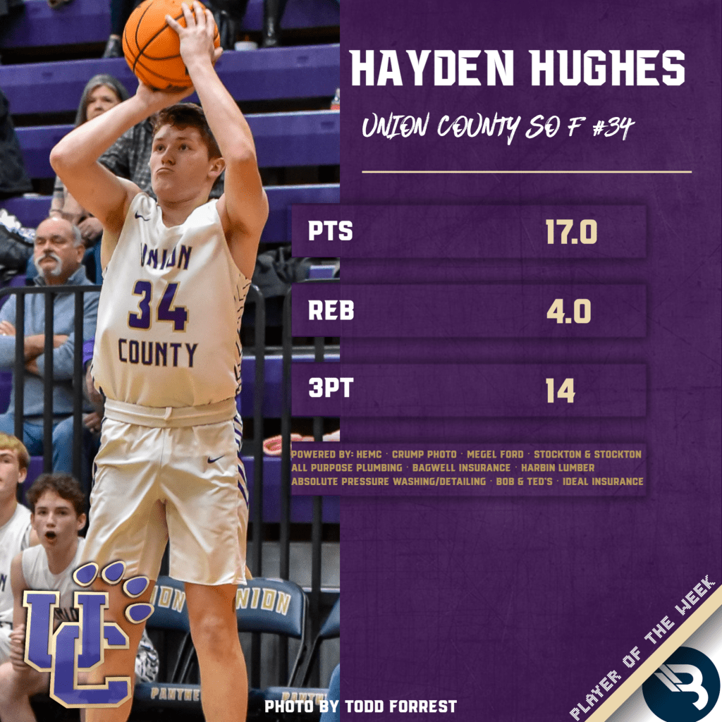 The BLITZ Fan Vote for Boys Basketball Player of the Week was Noah Futch (White County) after taking 436 of the 947 total votes. BLITZ then named Hayden Hughes (Union County) as Co-POW.