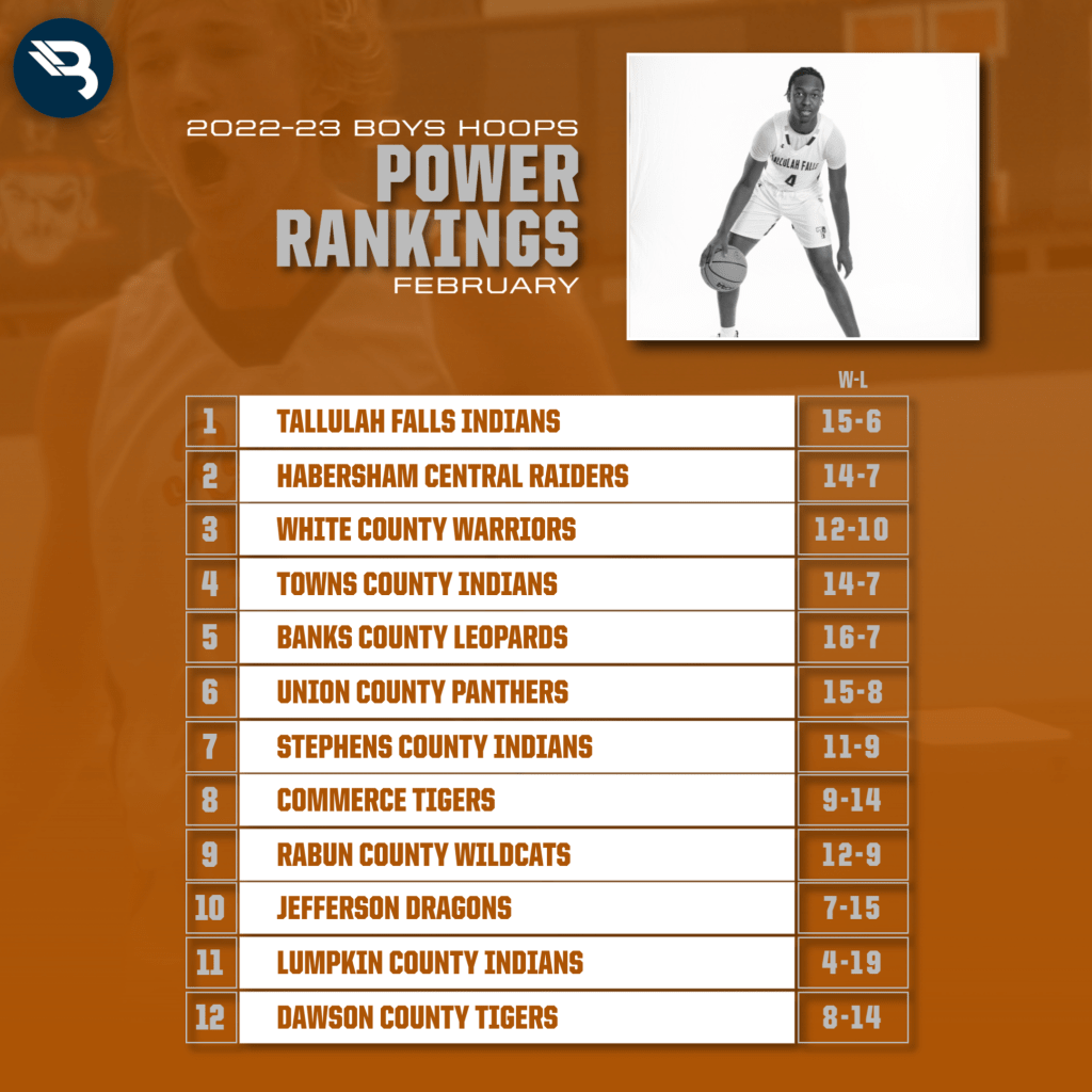 1. Tallulah Falls (REC: 15-6 / LAST RANK: 1 / CHANGE: N/A; MaxPreps Rating: 6.2; SOS: -1.1; #9 State Ranking)