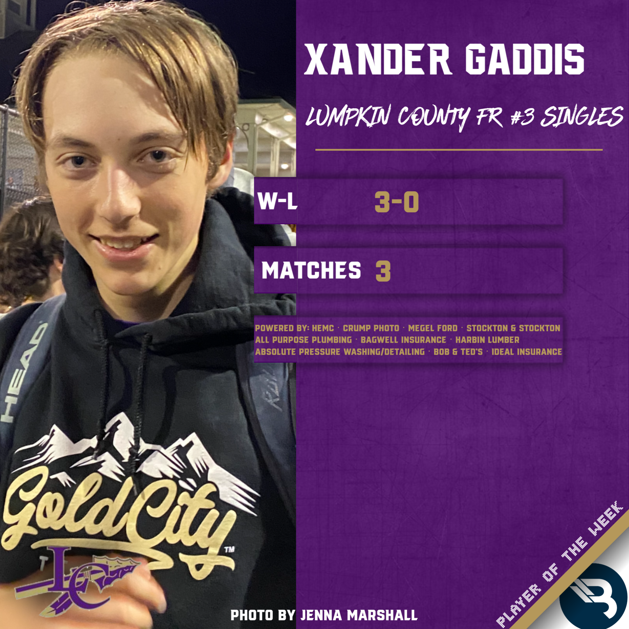 Freshman Xander Gaddis is off to a terrific start to his high school career. The Lumpkin County #3 Singles player went 3-0 in the Granger Invitational last week, thus earning his first BLITZ POW award.