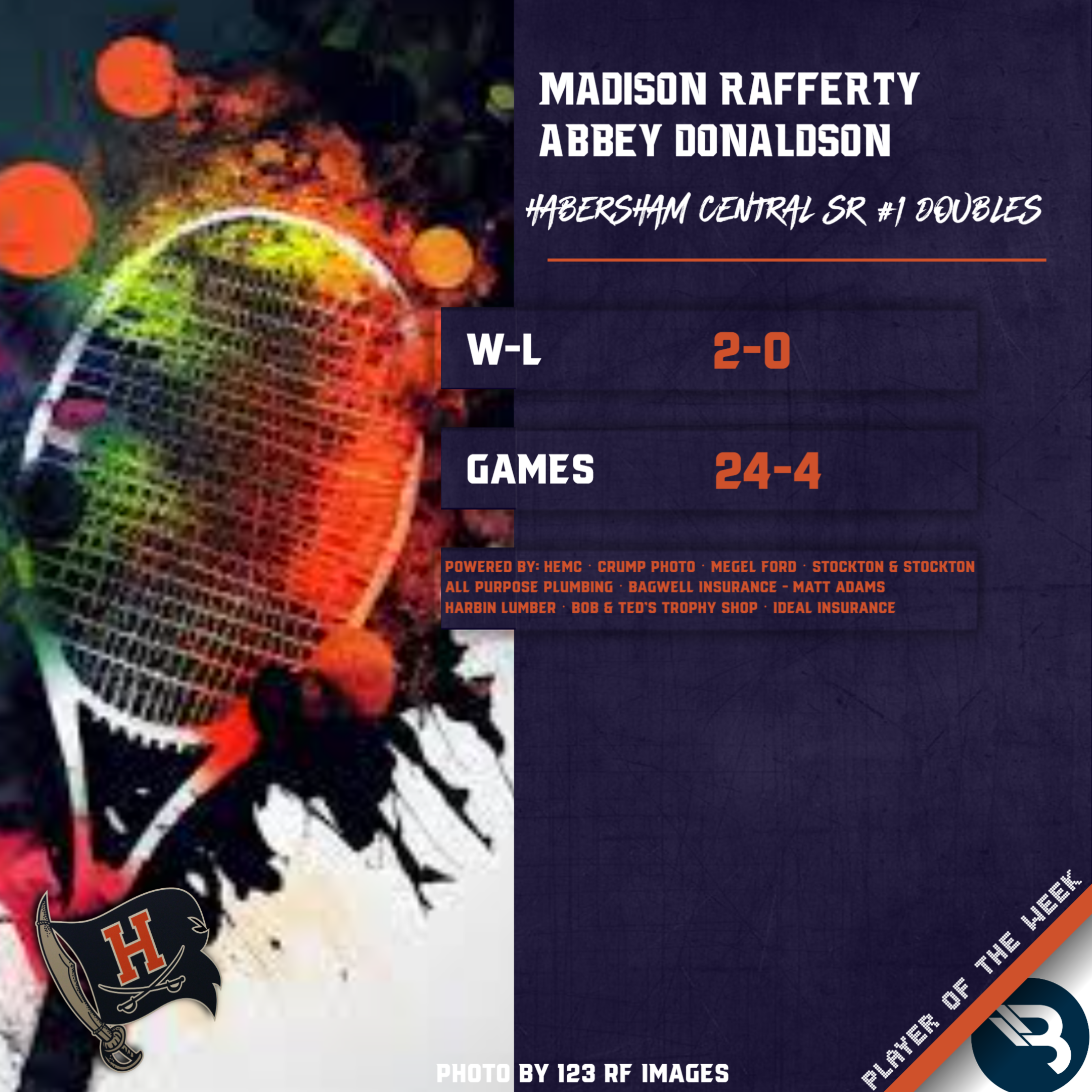 Habersham Central #1 Doubles combo of Madison Rafferty and Abbey Donaldson went 2-0 last week, going 24-4 in games played. The duo beat their Apalachee foes 6-0, 6-0, and then North Forsyth 6-2, 6-2. This is Donaldson’s 4th career POW award, and first for Rafferty.