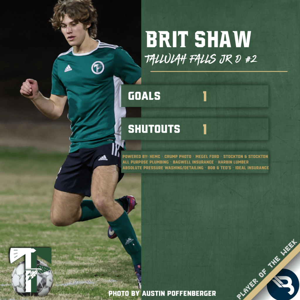 The BLITZ Boys Soccer Player of the Week, named by BLITZ, is Tallulah Falls’ Brit Shaw.