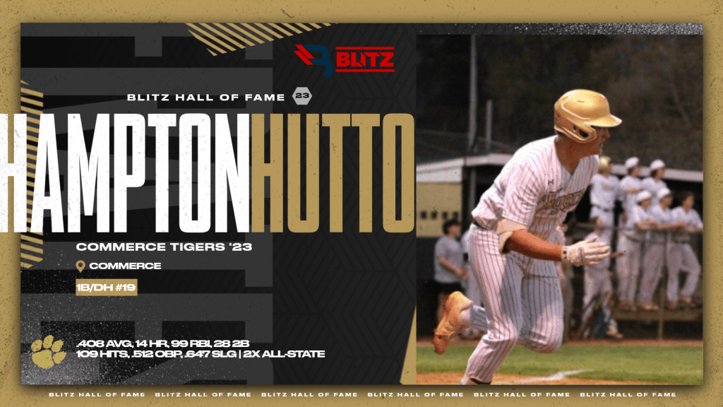 Hampton Hutto slugged his way to a solid career for the Tigers, helping Commerce to back-to-back region championships in the process. The 2-time All-State selection was a 1B/DH combo who hit .408 for his career and slugged .647 while getting on base at a .512 clip. He tallied 109 total hits with 14 HR and 99 RBI, adding 28 doubles. He was the BLITZ Player of the Year as a junior in 2022 after putting up a .400 average with 7 HR and 52 RBI. His senior year saw him hit .400 again with 5 HR and 28 RBI. (3,463 votes)