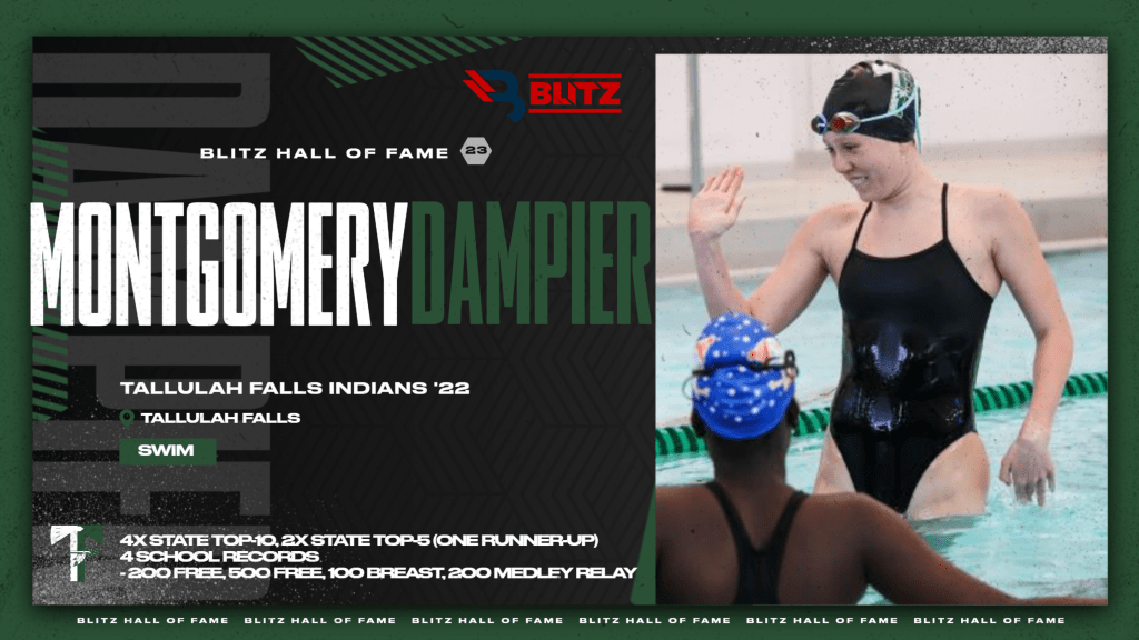 Dampier set the school mark in the 200 Free (at the State Championships), 500 Free, and 100 Breaststroke, and also was on the 200 Medley Relay team that set a school mark. She was the runner-up in the 100 Free, 4th in the 200, 6th in the 400 Free Relay, and 10th in the 200 Medley Relay at the State Championships in 2021-22. Dampier went on compete in college at Georgia Southern University. (250 votes)