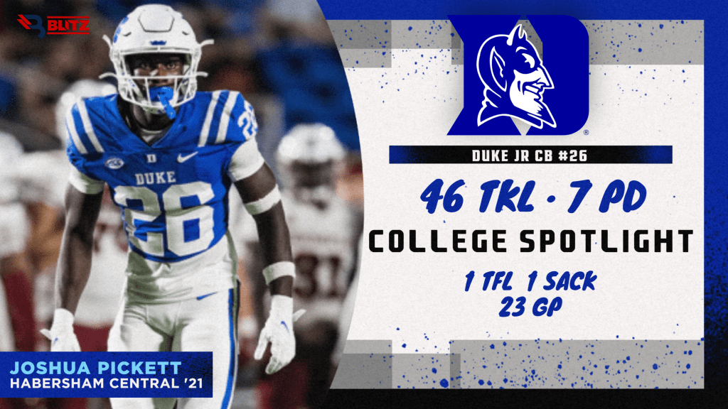 That position is a starting CB for the Blue Devils. Last season he became the starter and rewarded Duke with a stat line that includes 41 tackles (1 for loss), a sack, and 7 passes deflected. That came after a 2021 season in which Pickett recorded 5 tackles across 10 games played. So far, he’s had a lot of opportunity to make some memories on Saturdays in Durham.