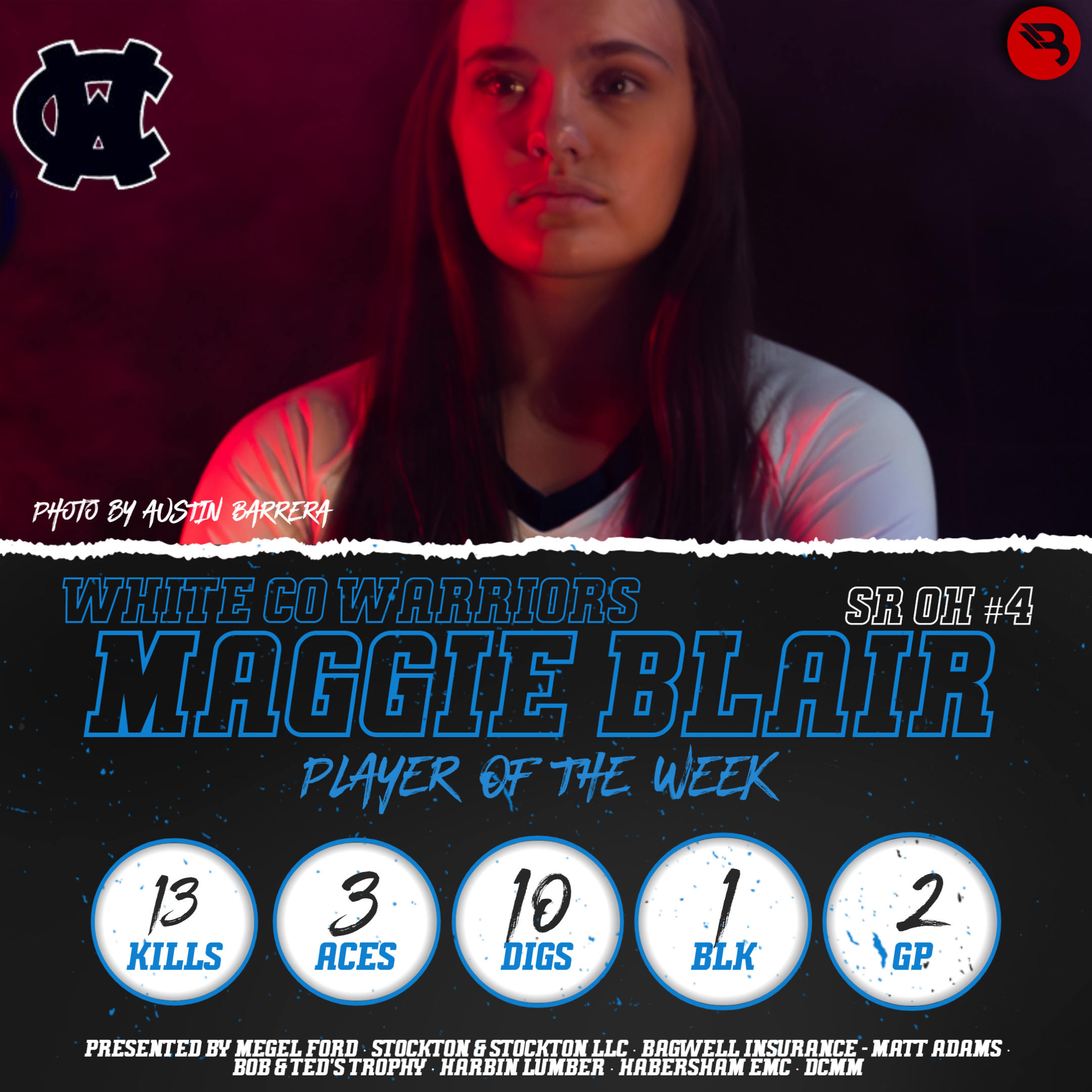 The BLITZ Volleyball Players of the Week are Lola Pruitt (Banks), who won the fan vote with 7,272 of the 12,948 total votes, and Maggie Blair (White) as the BLITZ Pick.