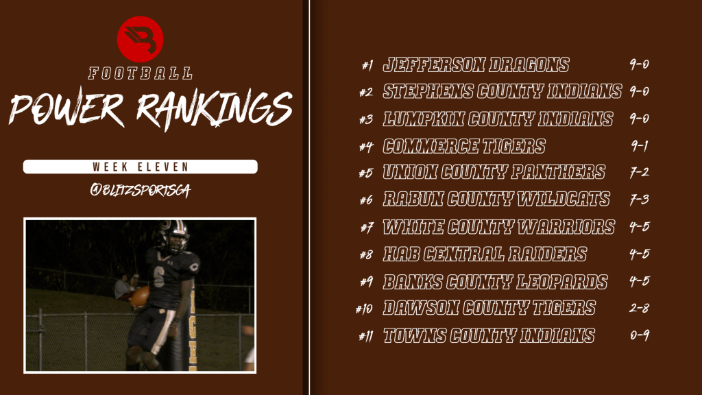 Week Eleven brought us 3 clinched Region Championships (Stephens County, Lumpkin County, and Commerce). 2 others – Jefferson and Union – are set to play for one this upcoming week. With that, we present our updated Power Rankings! SUBSCRIBE to BLITZ Exclusive for the full team-by-team analysis.