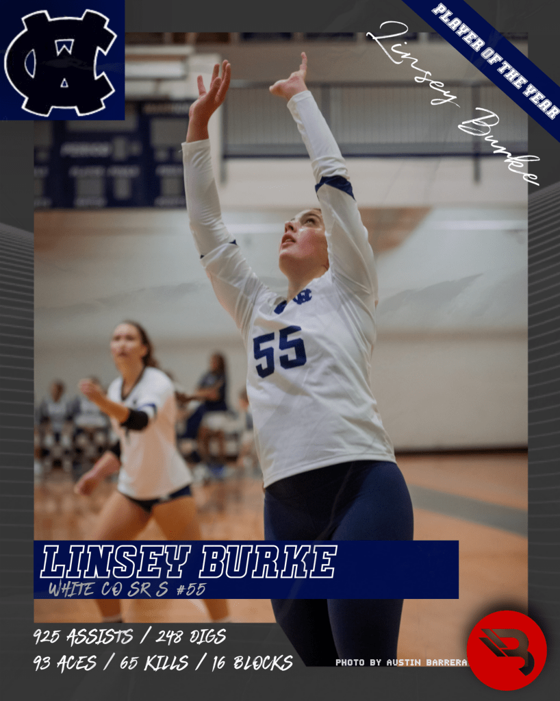 Linsey Burke is the first setter ever to win BLITZ Volleyball Player of the Year. That’s fantastic. She is also the first from White County to claim the honors. In all, Burke is the 9th senior to earn POY.