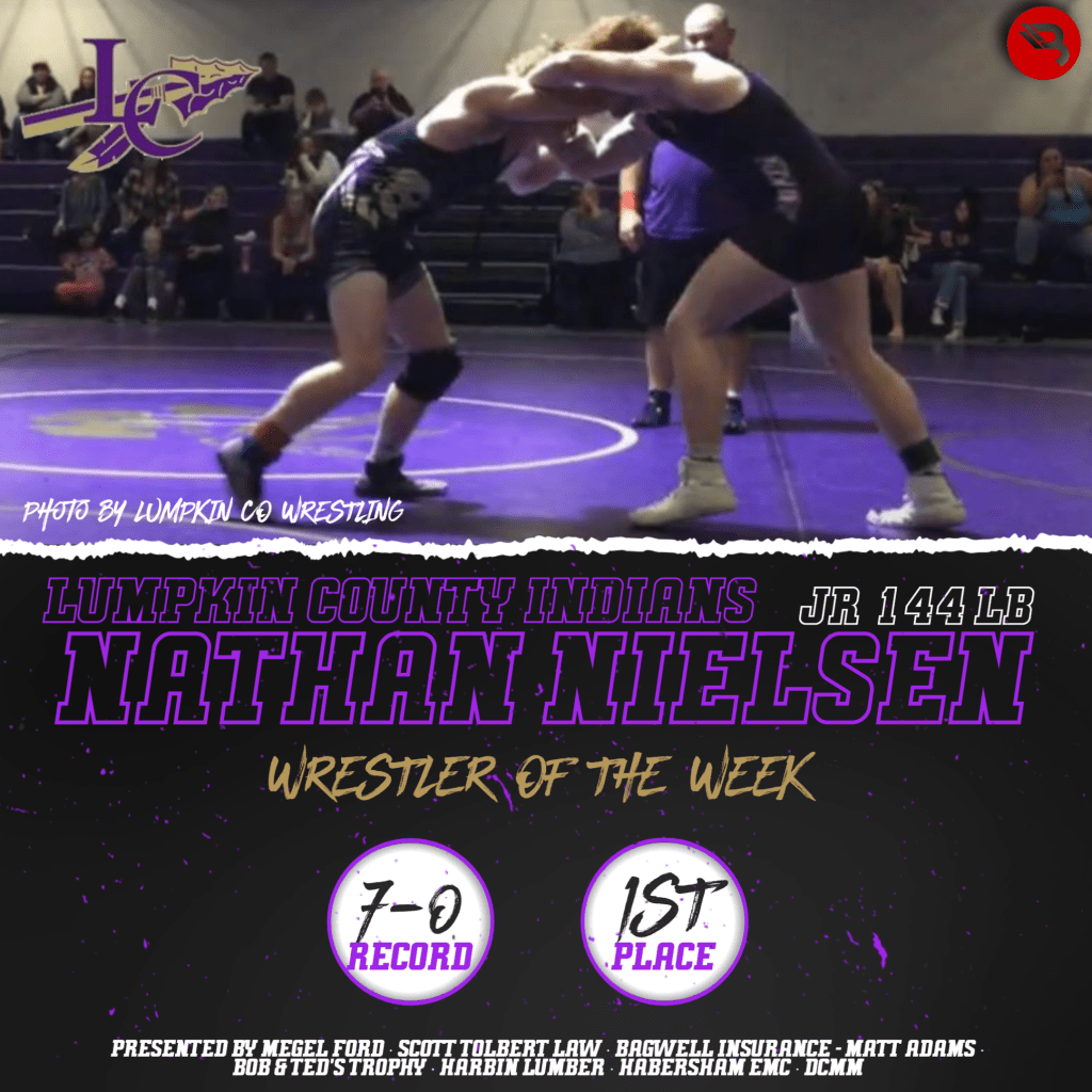 The BLITZ Wrestlers of the Week are Nathan Nielsen (Lumpkin County) and Hoke Hogan (Commerce). Nielsen won the Fan Vote with 7,582 of the 11,436 total votes. Hogan was the BLITZ Pick.