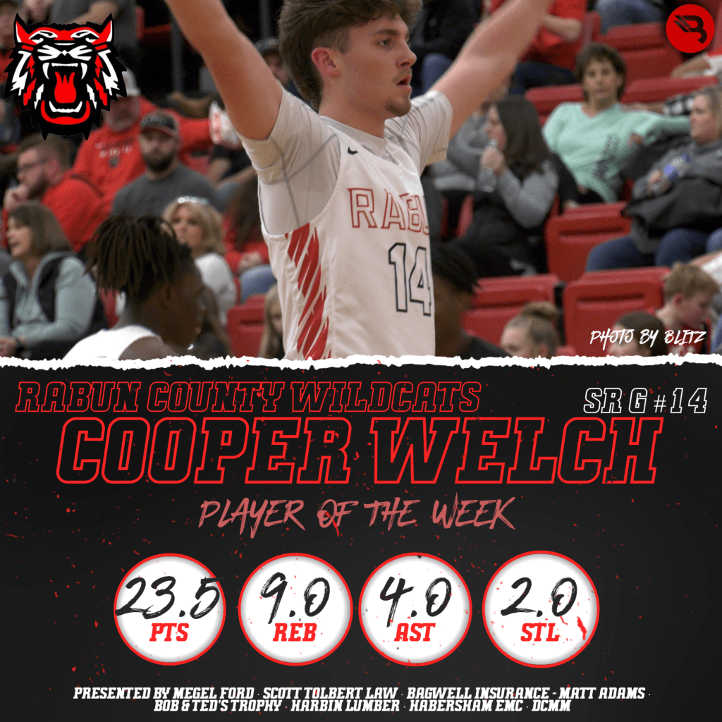 Cooper Welch had a monster week for the Wildcats. The Rabun County senior shooting guard averaged 23.5 points and 9 boards per contest, adding 4.0 assists and 2.0 steals per game. This is his third career POW award.