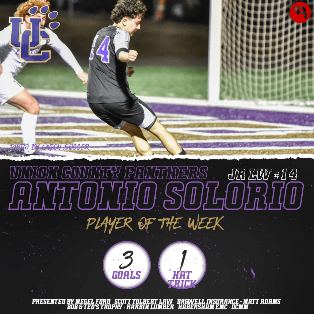 The BLITZ Boys Soccer Players of the Week are Antonio Solorio (Union County) and Austin Ball (Tallulah Falls). Solorio won the Fan Vote with 1,203 of the 2,980 total votes. Ball was the BLITZ pick.