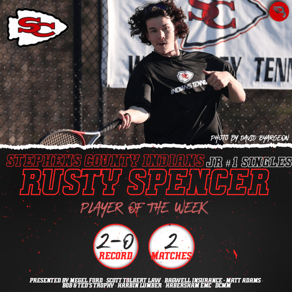 After going 2-0 in his 2 matches last week at 1-singles, Stephens County junior Rusty Spencer earns his first BLITZ POW award.