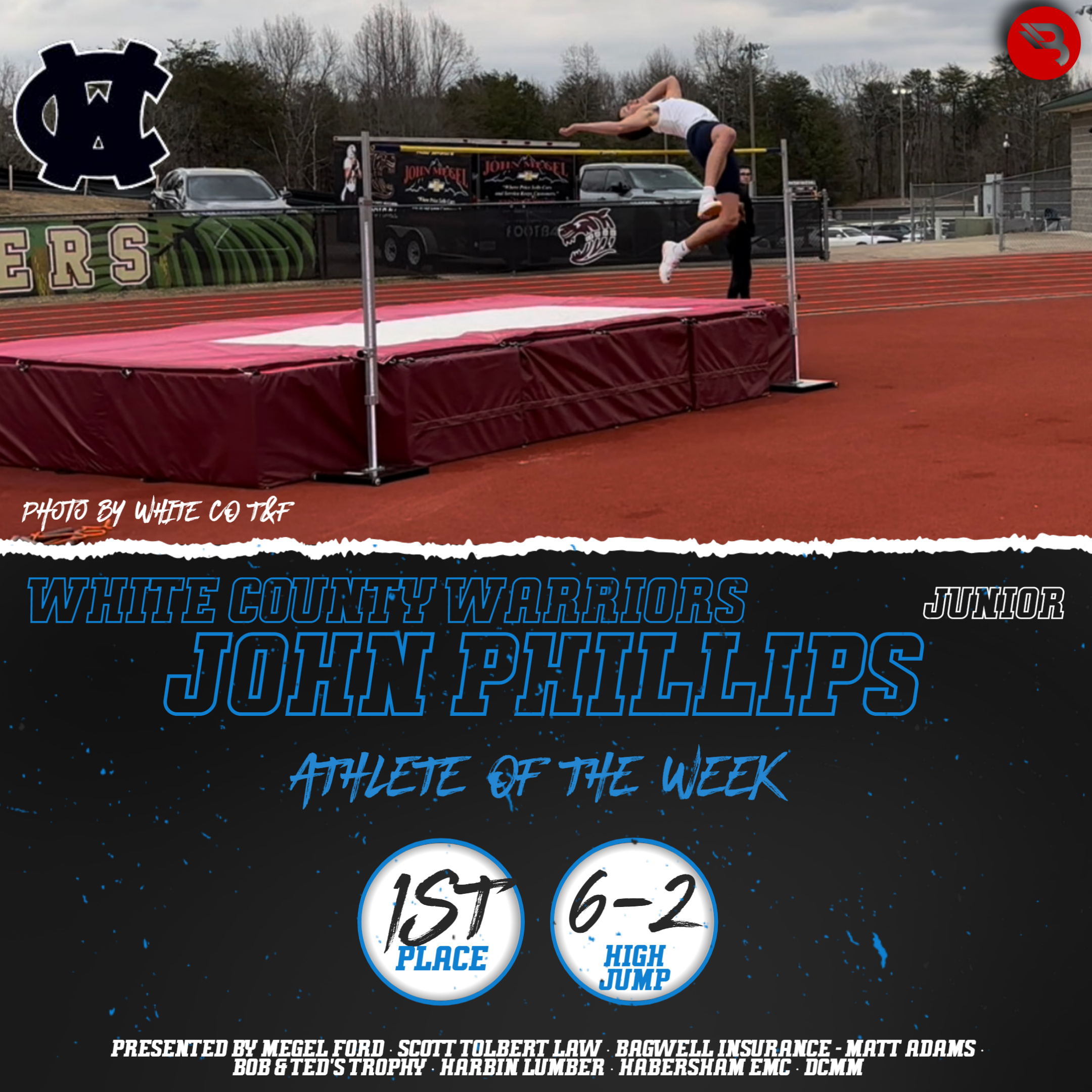 John Phillips stood out last week for White County. The junior recorded a PR with a 6-2 high jump, placing first in the meet for the Warriors. This is his first POW award.