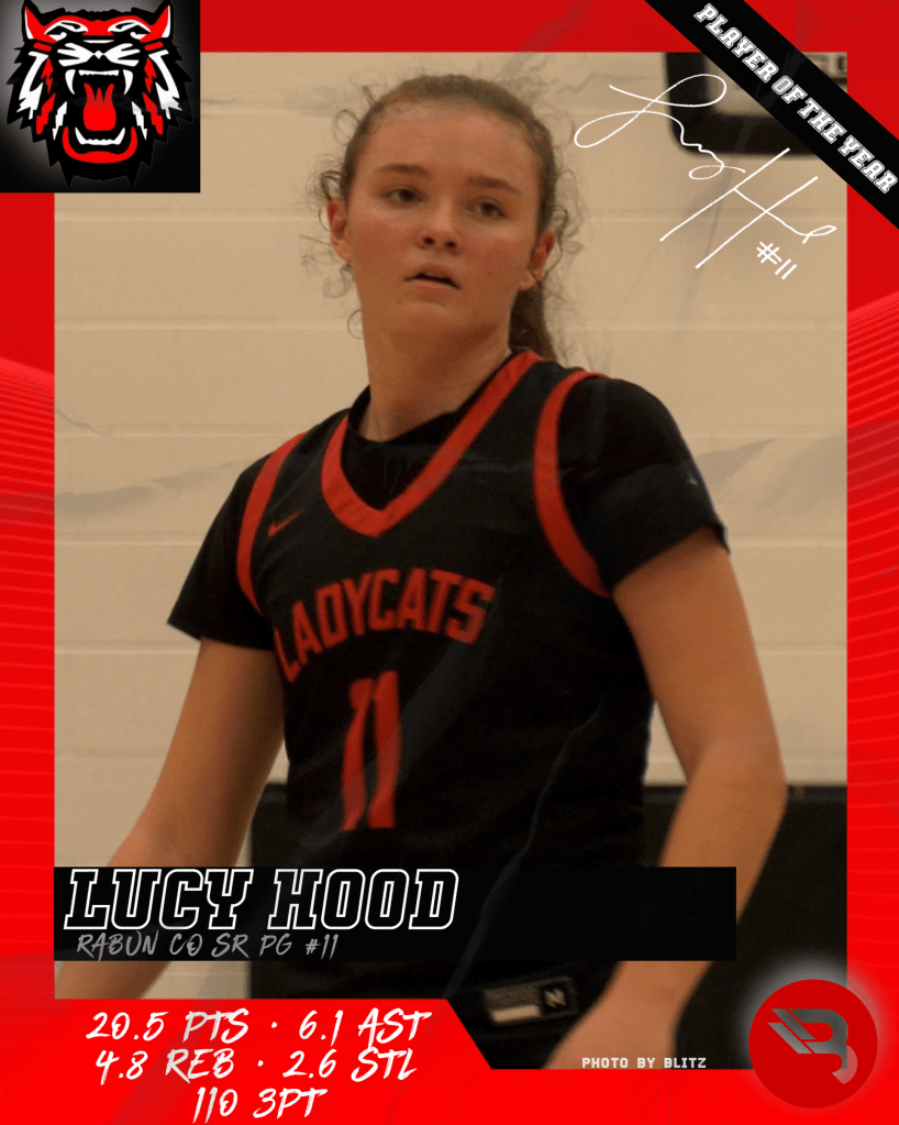 Perhaps it’s no surprise with all the hype surrounding her that Lucy Hood finishes her career as BLITZ Player of the Year. She put in the countless hours of hard work to make this a reality, and leaves Rabun County as one of the Lady Cats’ all-time greats!
