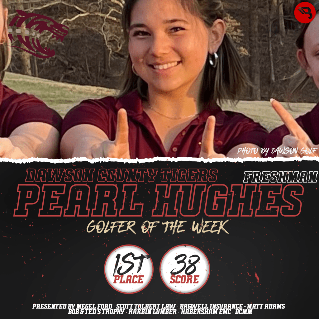 Freshman Pearl Hughes is having an early breakout to her career. The Dawson County standout placed first with a 38 last week against Pickens. This is her first POW award.
