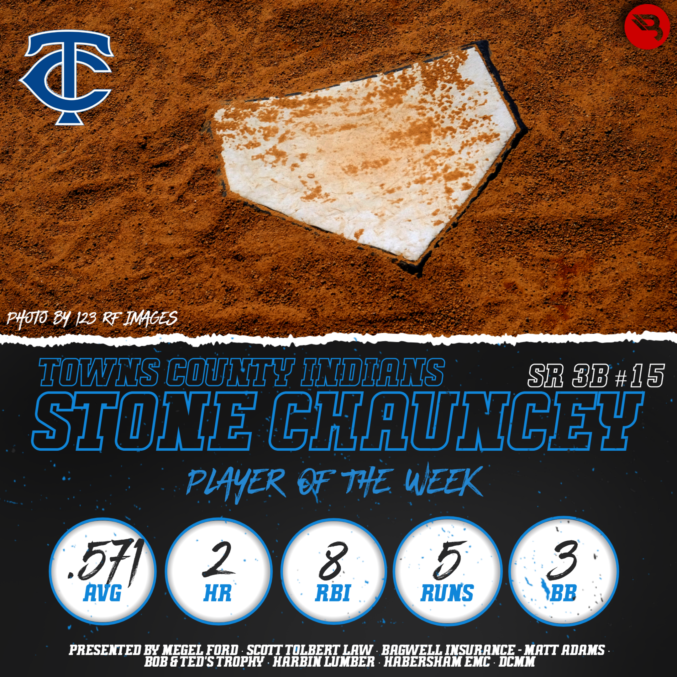 The BLITZ Baseball Players of the Week are Cooper Welch (Rabun County) and Stone Chauncey (Towns County). Welch won the Fan Vote after taking 5,802 of the 13,252 total votes. Chauncey was the BLITZ Pick.