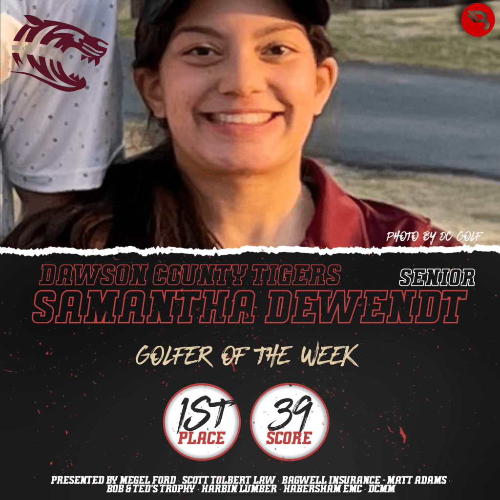 Dawson County’s standout golfer Samantha Dewendt shot a 39 against North Forsyth in a low medalist performance recenty. The senior, committed to Columbus State University, wins her 3rd POW award.